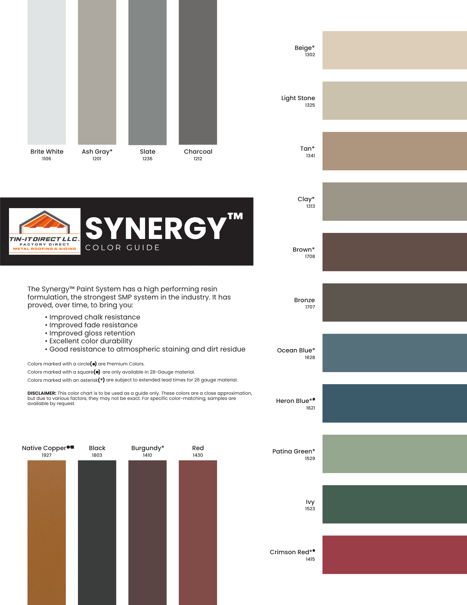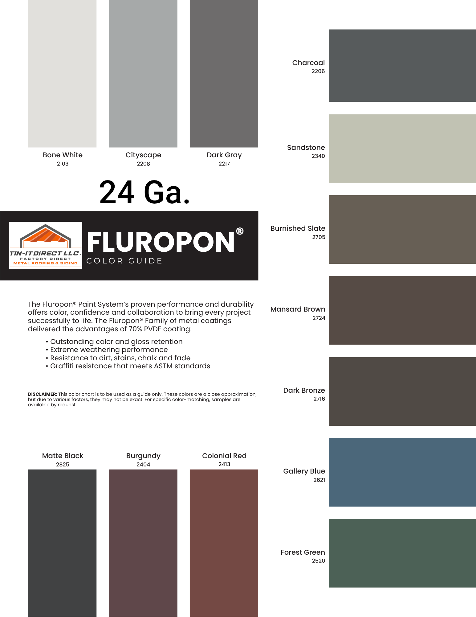Are you searching for a metal roofing product that suits your size and color specifications? There’s no better place to turn than Tin-It Direct. Our factory-direct warehouse sells all kinds of metal roof panels, including sizes ranging from 24-29 gauge and colors in up to 28 shades. You can also purchase architectural trims, screws and accessories. No matter what you’re planning, we’ll make sure you have the materials needed to reach your goals.